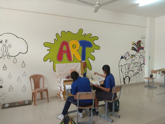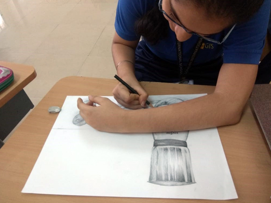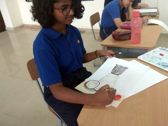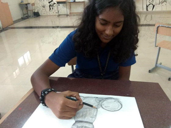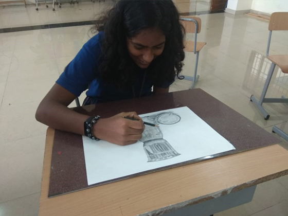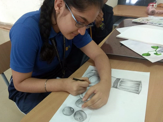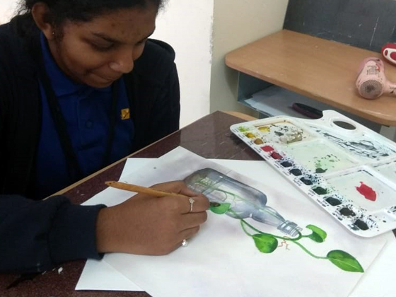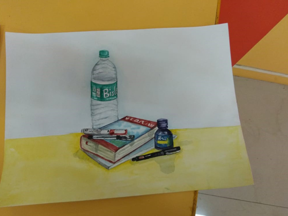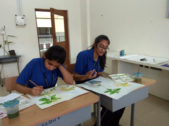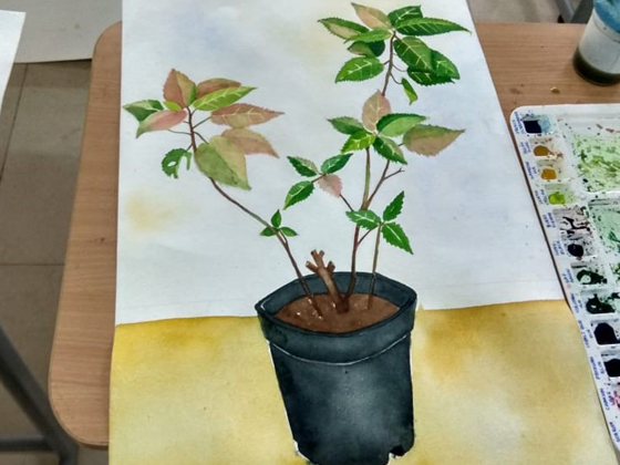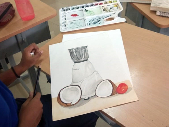Students of Grade IX and X involved in drawing and painting of still life and nature.