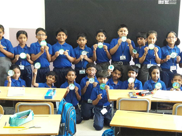 Students of Grade III and IV very enthusiastically participated in making and coloring ‘Environment Day Badges’ as part of the Environment week activities. The aim of this activity was to sensitize the students towards the environment and bring about an awareness regarding conservation of environment. They coloured these badges with beautiful blue and green colors that symbolize the Water and Land on Earth. They also wrote slogans which emphasized on making the Earth a better place to live in. This activity was their small contribution towards a – GREENER, CLEANER AND PEACEFUL EARTH-their home , their planet.