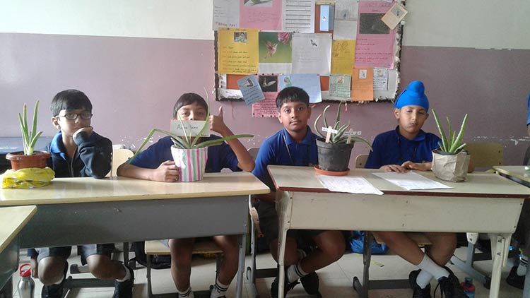 Students brought various saplings like Neem, Tulsi, Bramhi, Aloevera, Guduchi, Ajwain, Mint, Calendula etc. Charts & fact cards contained information about these plants as well as plants like Amla, Lanvender, turmeric, ginger etc.