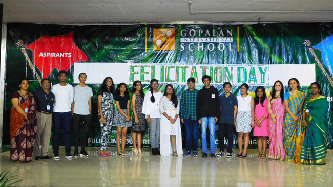 The event was presided over by the director, Mrs Sunita Prabhakar, the Principal of GIS, Mrs Madhu Narayan, G M, Col. Suresh and Academic Coordinators, Mr Nagraj and Ms Renu S. The school toppers, Pavithra Reddy and Karthik Chidambaram were awarded for an All-round Excellence and the highest score by the director.