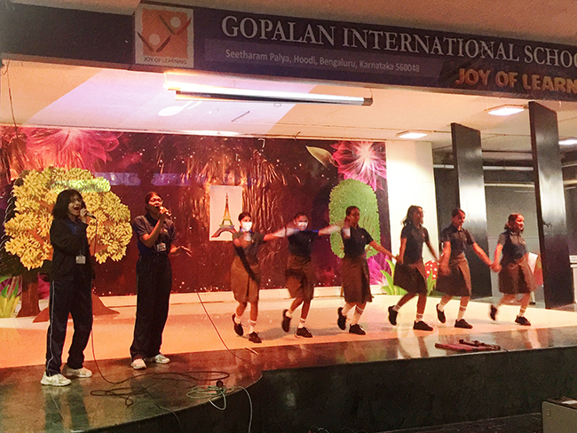 French second language students from class5 to10 celebrated the French National day with great zeal.The celebration began with a Power-point presentation on French revolution, followed by a beautiful French song; an interactive presentation of “France & French”; an histrionic act on the life of Jeanne d’Arcwas enacted by students, delivering French dialogues fluently. The celebration came to an end with a melodious French song sung by our Star singers.