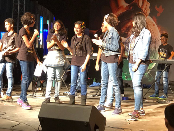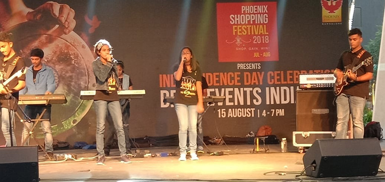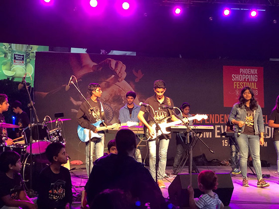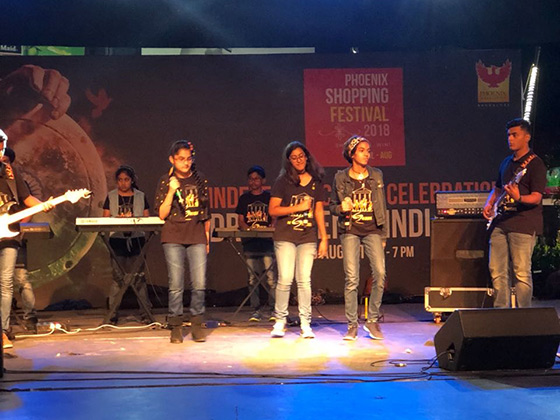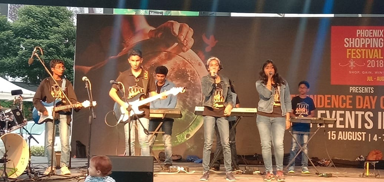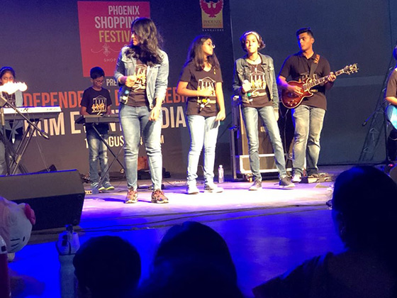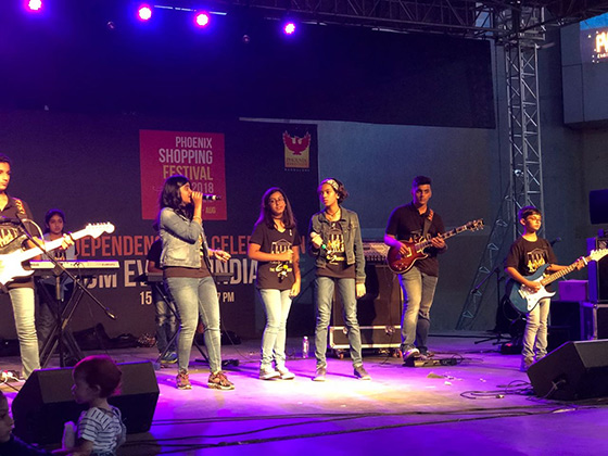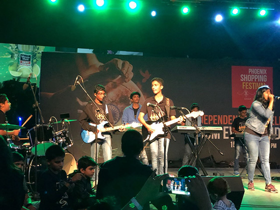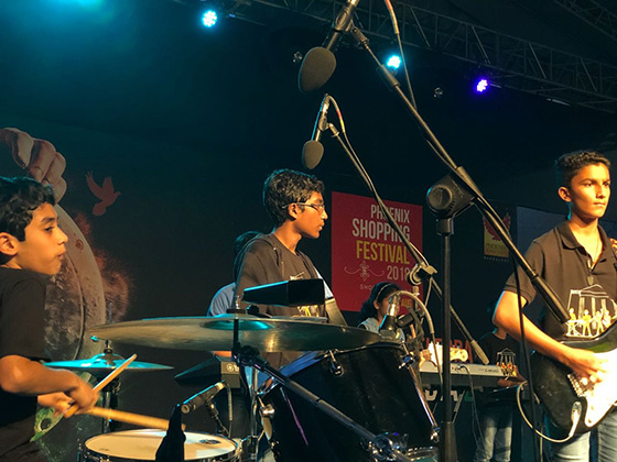 The G Minors out did themselves yet again with a stellar performance at the Phoenix Mall on the 18th of Aug . The children's choir kicked things of which was followed by the little kids from grades 1 to 4 covering 8 solo songs using karaoke traçks.. Then it was the turn of the rock stars of the main G Minors band who just rocked the stage which had a great crowd to edge them on.. This was their 2nd road show in 4 days following their earlier gig at the hard rock cafe. A huge thanks to all the parents of the G Minors, Madhu Mam our Principal and Neville Dmonte our music teacher for the success of this event.