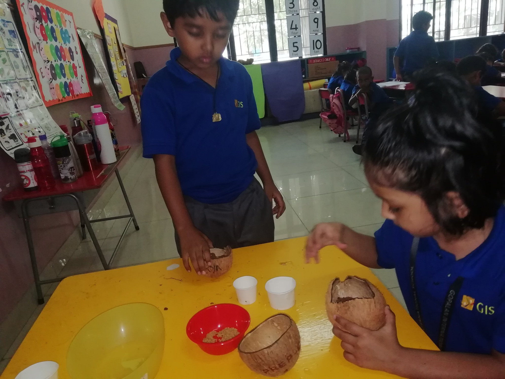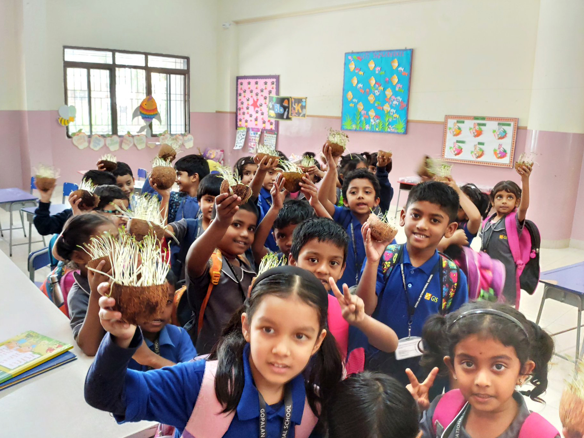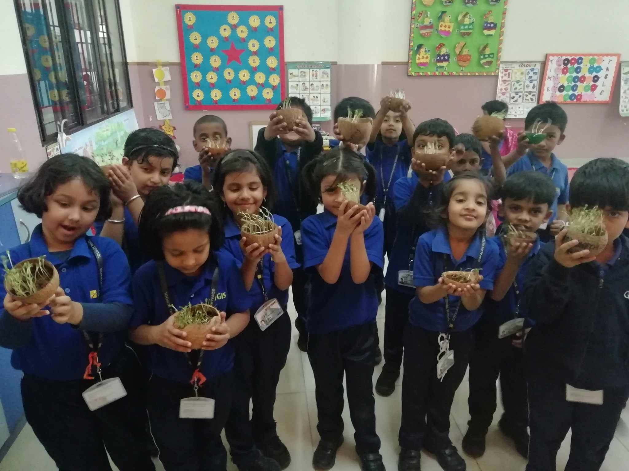Students of Pre-primary Department had yet another exciting day. Each child brought a used coconut shell to use for germinating seeds. They were thrilled to see their seeds sprout and grow !! They also learnt the importance of soil, sunlight and water for seeds to germinate.