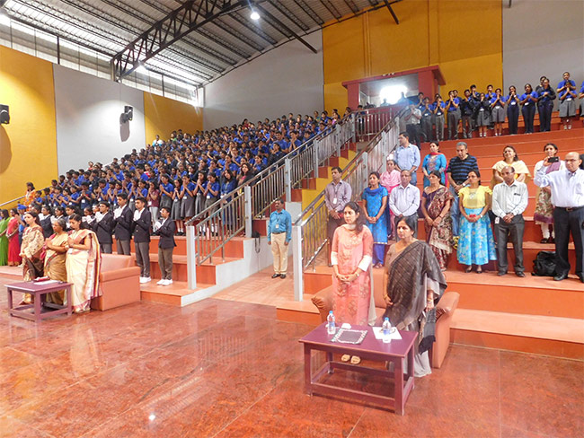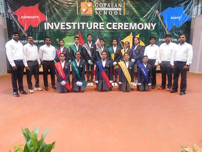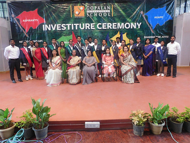 The Investiture Ceremony of Gopalan International School, Bangalore for the academic year 2017-2018 was held with lots of enthusiasm and gusto in a special ceremony at the school amphitheatre on the 16th of June, 2017. Ms.Sunitha Prabhakar, Director of GIS graced the occasion as the chief guest. Principal Ms.Madhu Narayan presided over the function. Besides them, eminent guests like Col. Suresh Kumar, GM of Gopalan International school , CV.Nagaraj, Academic coordinator of Gopalan schools were also present on the occasion.