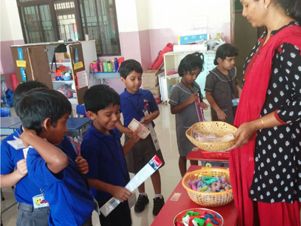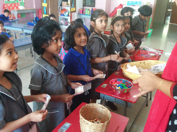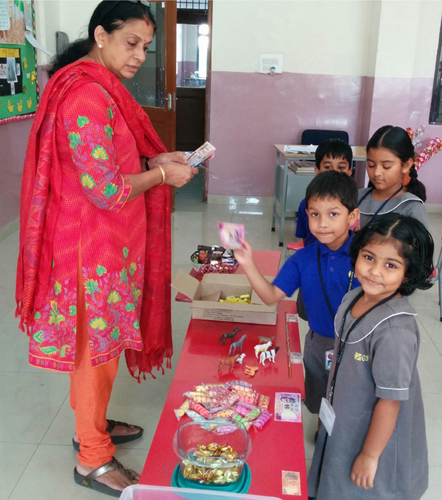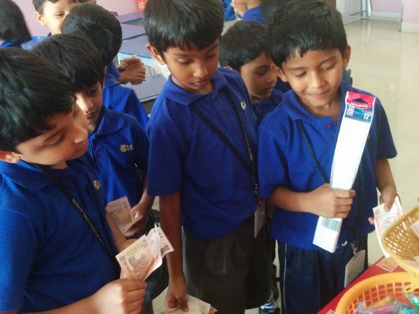Market Day was organised in Prep on 24th March 2016. Children were given paper 'money' to buy items like pencils, toffees, etc. They learnt how to trade using the money and also 'calculated' how much they needed to buy what they wanted. Some were 'sellers' and some were 'customers' and exchanges finalised the 'transaction'. Basic commercial practice was instilled with this activity