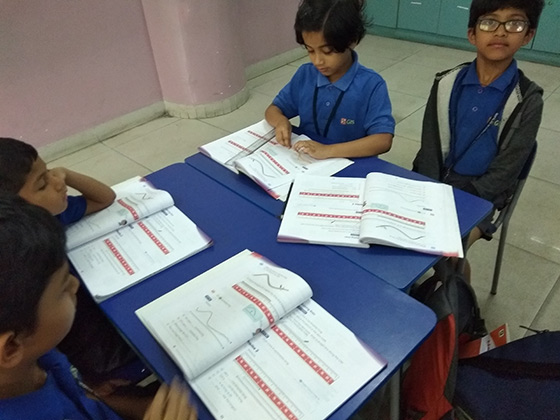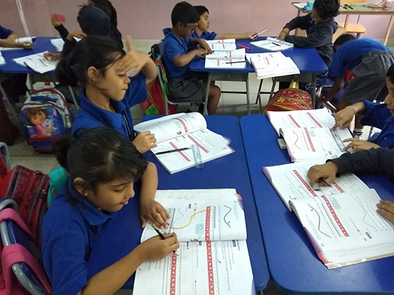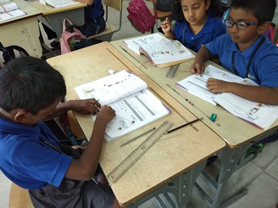II STD students were engrossed in measuring a piece of woollen thread given to each of them. They enjoyed learning the concept of length.