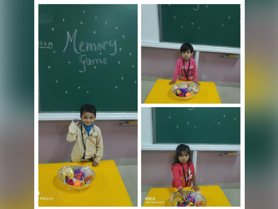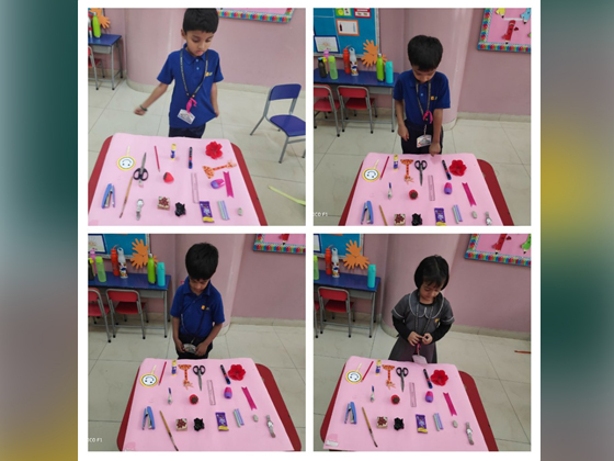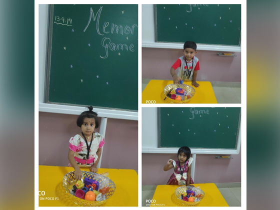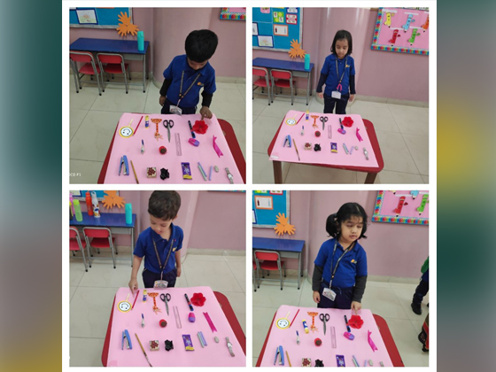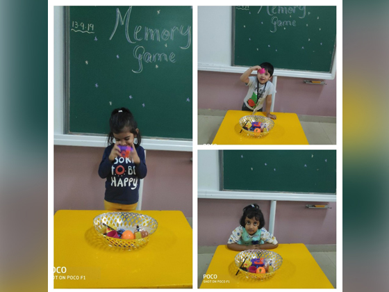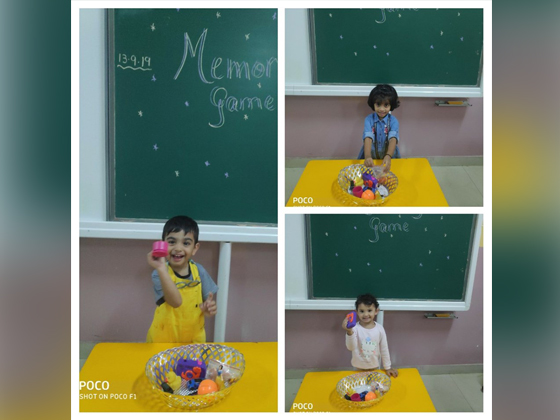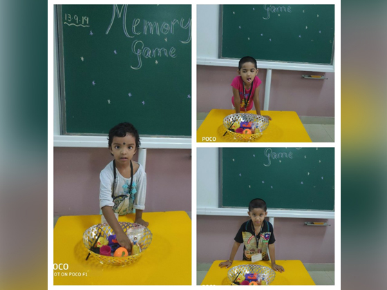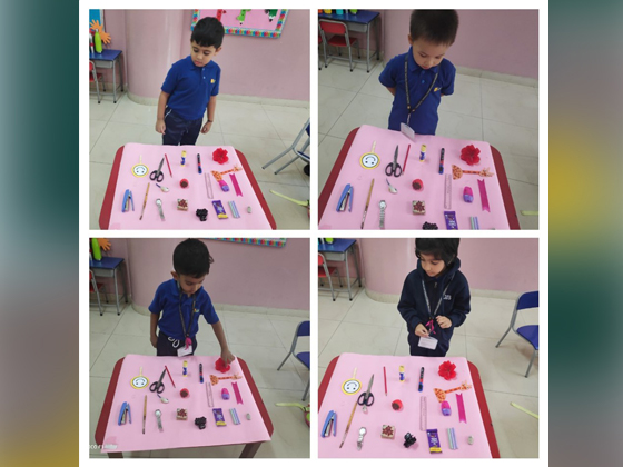 Little ones from pre-primary had fun jogging their memories to remember all the items kept on a table in their classes. They were given time to observe the items displayed in their classes. Then they had to orally recollect the names of these to their class teachers.