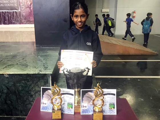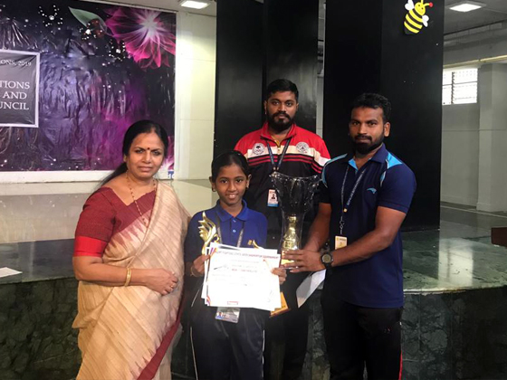 Category - Under 9 and Under 11 - Gold Trophy ( 1st Place) and Talent fighters state Open badminton tournament - Under 9 - Gold trophy (1st Place) bagged by Selvasamruddhi of Grade IV D.
