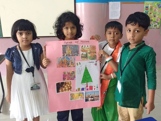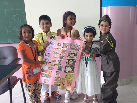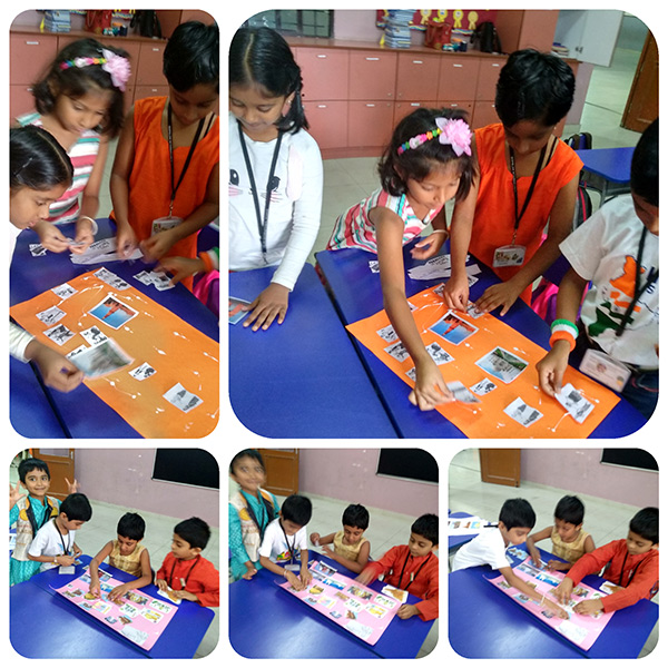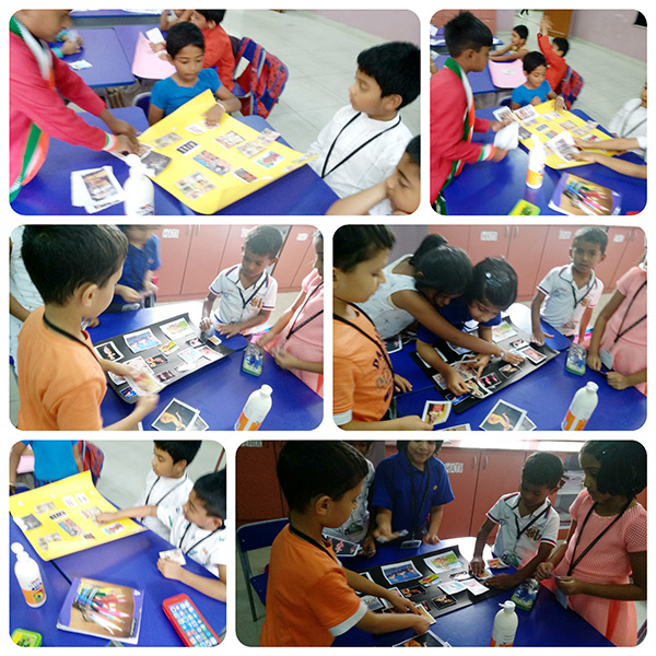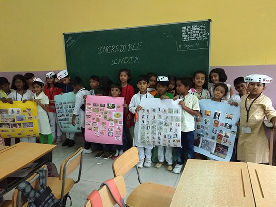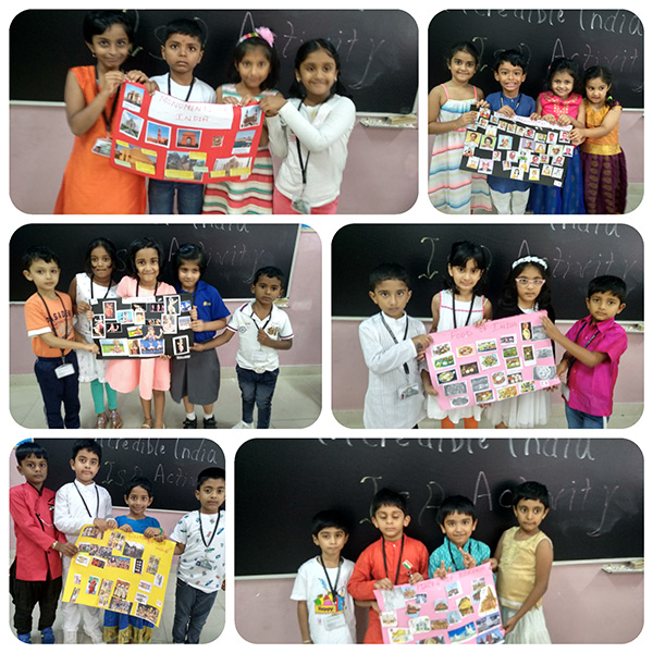 Students of Grade 1 to 4 celebrated the 72nd Independence Day by making a poster on “Incredible India.” Children brought pictures of the different food, festivals, clothes, monuments etc of various parts of India and they were very excited to make a collage of the same. A discussion about the various cultures across India was conducted in all the classes. Children had gained knowledge about different cultures of India through this activity.