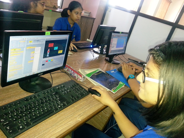 Our students of grade VI have learnt quite a bit of programming this year. The year started with learning to write algorithms and drawing flowcharts. It was important to learn how to give clear and appropriate instructions to the computer. We learnt this with the help of an activity where one of the team members was our 'blind folded robot' who was instructed by the others to locate an item hidden in the room. The team which took the shortest time to get this done from its robot was the winner.