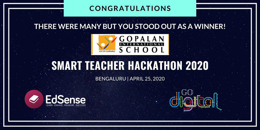 Gopalan International School sent three teams to participate in the Smart Teacher Hackathon organised by EdSense Karnataka.