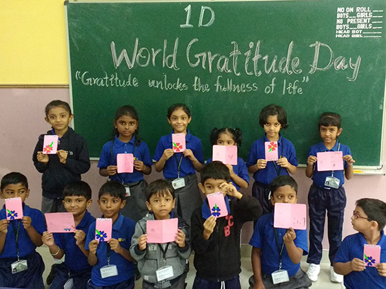 World Gratitude Day was celebrated on 21st September 2018. The day was celebrated to express gratitude and appreciation for the wonderful things that parents do for children. Students of Classes I to IV made Thank You Cards for their Parents. The children were so excited to make the card. They were so happy to express words from their heart thanking their parents for everything.